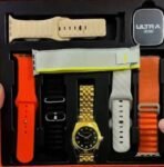 • ملحقات الساعة 6 سترابات (2 قماش – 4 سيليكون – ساعة عقارب – شاحن).